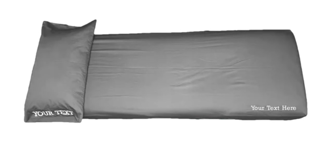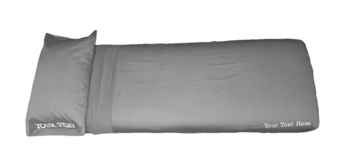 - Includes (1) line of text 20 characters long on fitted foot top sheet